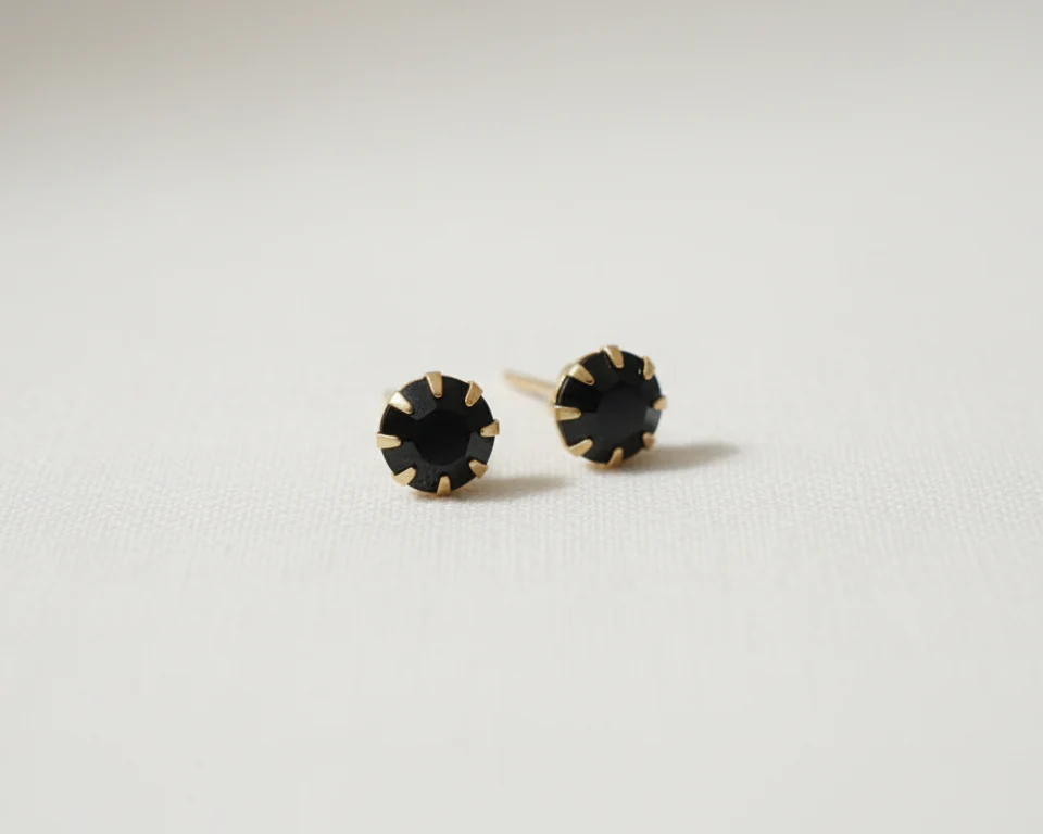 Available in Gold, Silver, and Black finishes, the studs are crafted with high-quality metal plating for lasting shine and durability. Their secure backing ensures comfortable all-day wear, while the striking black stones add a bold, stylish statement to any outfit.