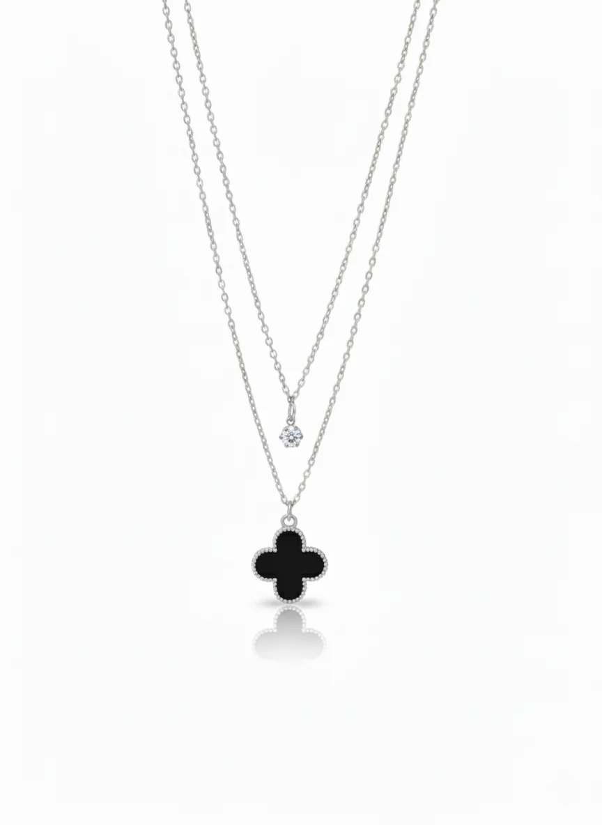 Bold yet beautifully refined, the Black 4 Petal Flower Necklace blends modern sophistication with timeless floral elegance. Featuring a stunning four-petal flower pendant in rich black enamel, outlined with sparkling crystal accents, this necklace is the perfect statement of chic confidence.