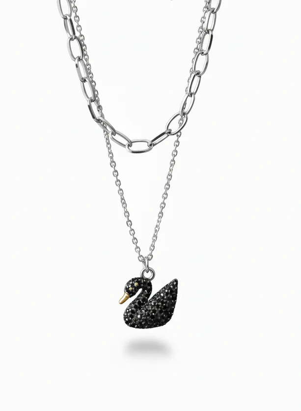 Mysterious, bold, and irresistibly elegant — the Black Swan Pendant Necklace embodies grace with a touch of allure. Designed with exquisite craftsmanship, it features a striking black crystal swan pendant suspended from a sleek dual-layer silver chain, symbolizing strength and timeless beauty.